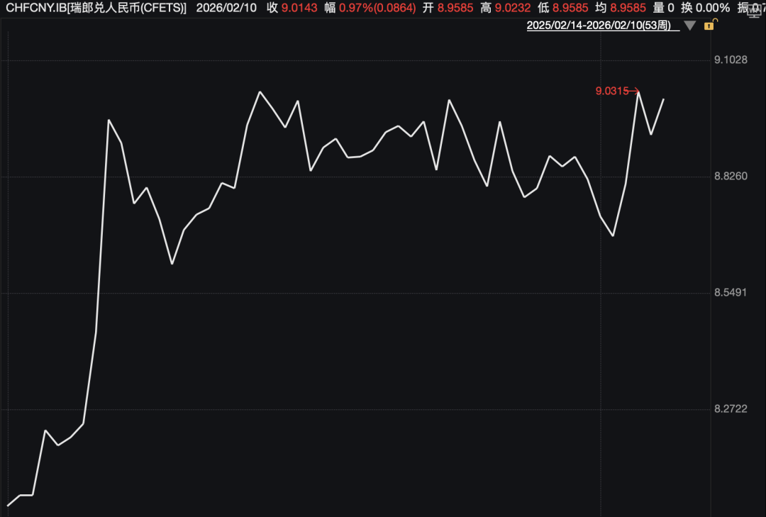 根据2025年全球外汇市场的统计,瑞郎在过去一年呈现出极强的避险属性,瑞币兑人民币一度冲破8.2-8.4的关口,升值幅度接近8%。