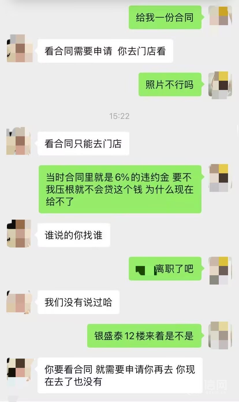 “贷款的时候我签了合同,但合同只有一份,签完字就被留在店里了,也不让我拍照。所以当他们不让我提前还款的时候,我就想看看合同,可谁知道看我自己签过字的合同还得提前申请,等了半天也没让我看到。”毛女士提出过合同里约定违约金的情况,但苦于手里没有合同,也就没有更好的解决办法。