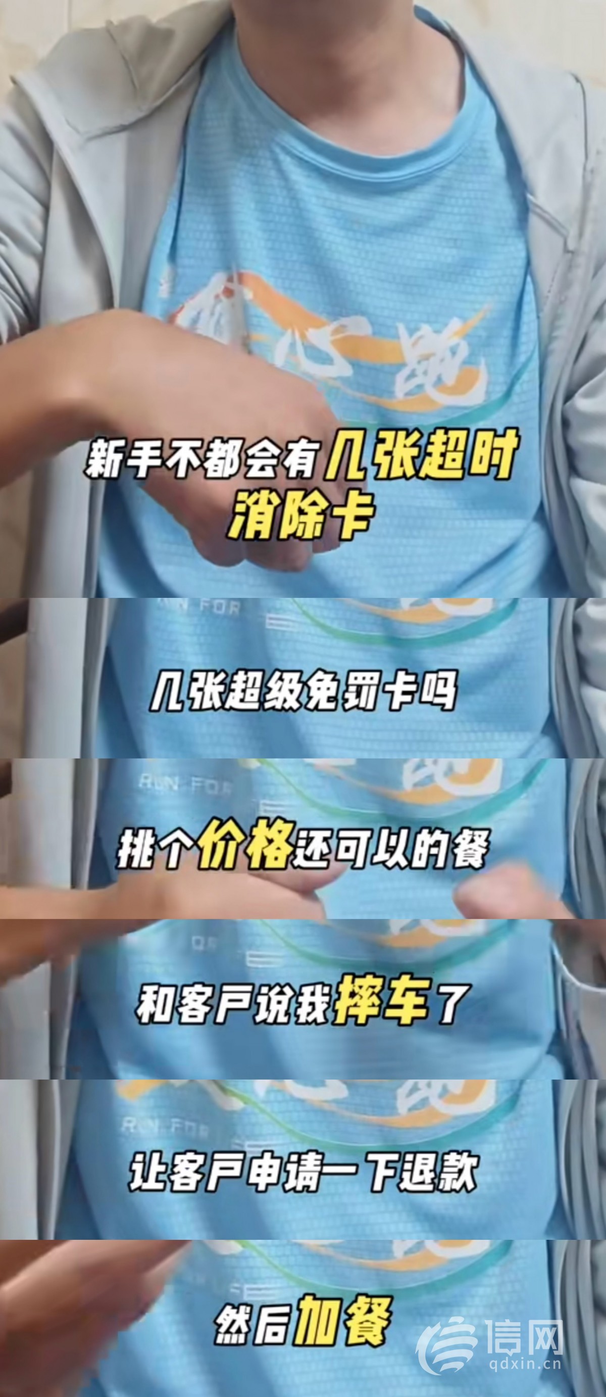 近日,有网友向信网转发了一条视频,据了解,该视频中的博主是一名美团众包平台旗下的外卖员,他发布的1000多条视频中多以“外卖日记”为主题。其中有一条视频转发量高达500余次,视频中,该博主通过分享“钻规则空子”的技巧吸引流量,他详细描述了如何利用外卖平台给予新注册骑手的“超级免罚卡”来规避处罚,教唆网友以“路上摔车”“餐被偷了”等理由为借口,故意吃掉顾客的高价餐品。