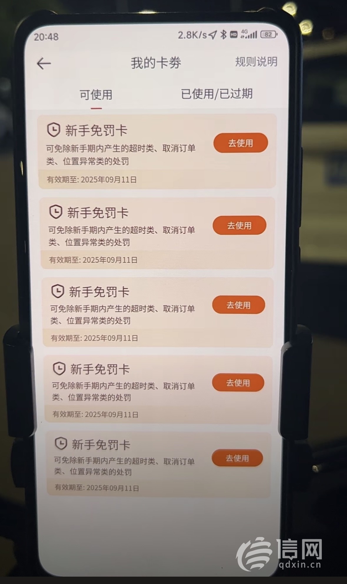 美团平台提供的新手免罚卡。(来源:受访者)