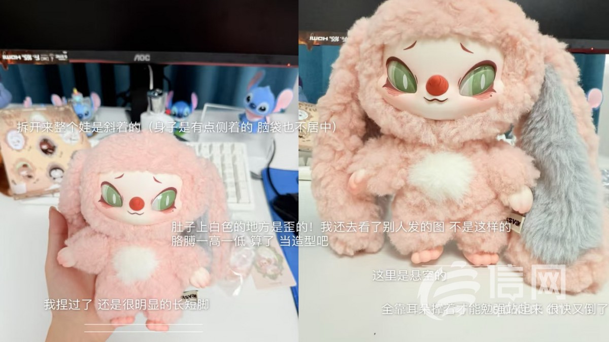 小红书用户“海豹猪”表示,她抽到的"小姐"款SIINONO赛诺诺盲盒售价89元,存在身子歪斜、胳膊和腿长短不一、耳朵左右不对称、身上毛发无法盖住缝线等多个问题。这并非首次遇到类似情况,今年5月和6月,她在Letsvan购买的三个WAKUKU盲盒同样出现"长短手、长短脚"问题,其中“唱摇滚”款娃娃“歪得屁股都坐不住”。她质疑:“手工制作不是出现瑕疵的借口,很多衣服裤子是机器切片然后手工缝制的,这么明显的一长一短还说是正常情况?”