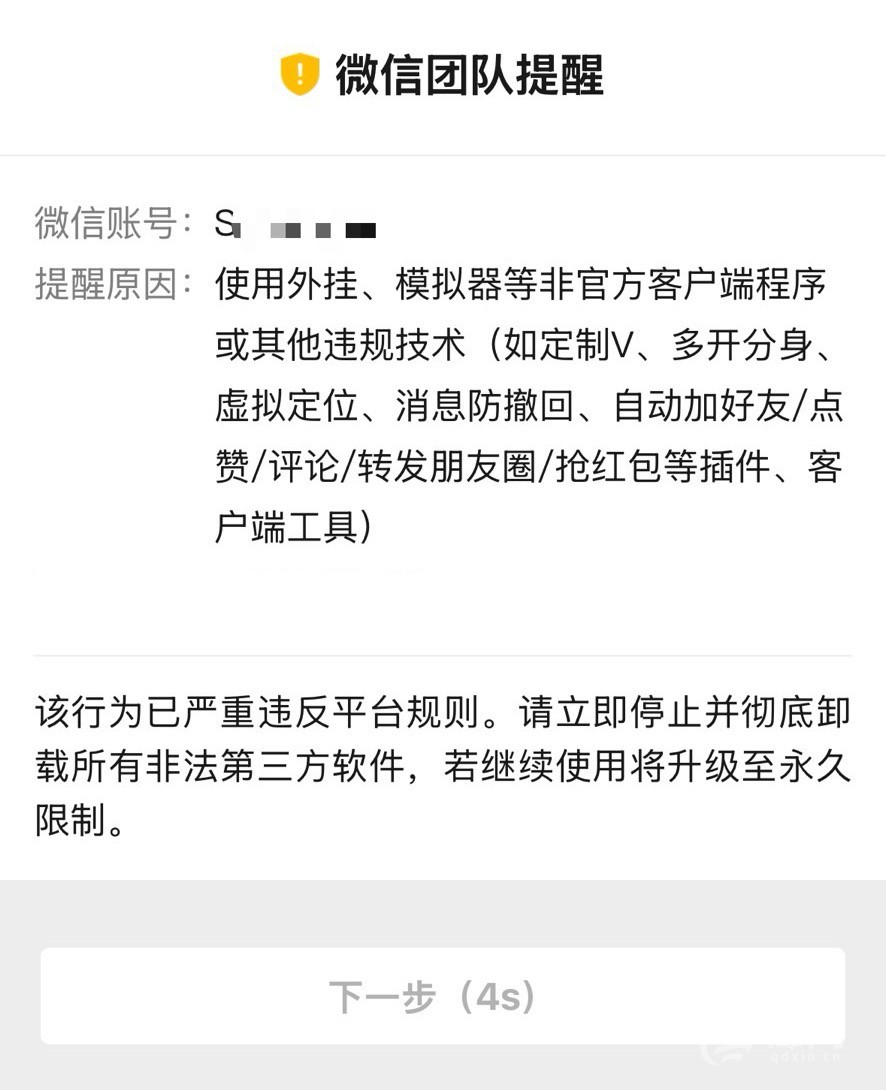 可这份“满意”仅持续了不到24小时。9月10日上午,邵女士的手机弹出微信官方团队的系统提示,内容显示“检测到你当前设备正在使用非官方微信插件,此类插件可能存在账号被盗、信息泄露等安全风险,若再次检测到,将依据《微信个人账号使用规范》对账号进行限制或封禁处理”。