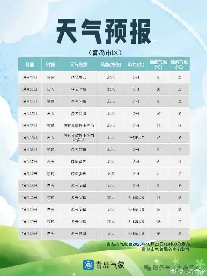 冷空气即将抵达青岛 10月26日至27日气温将下降