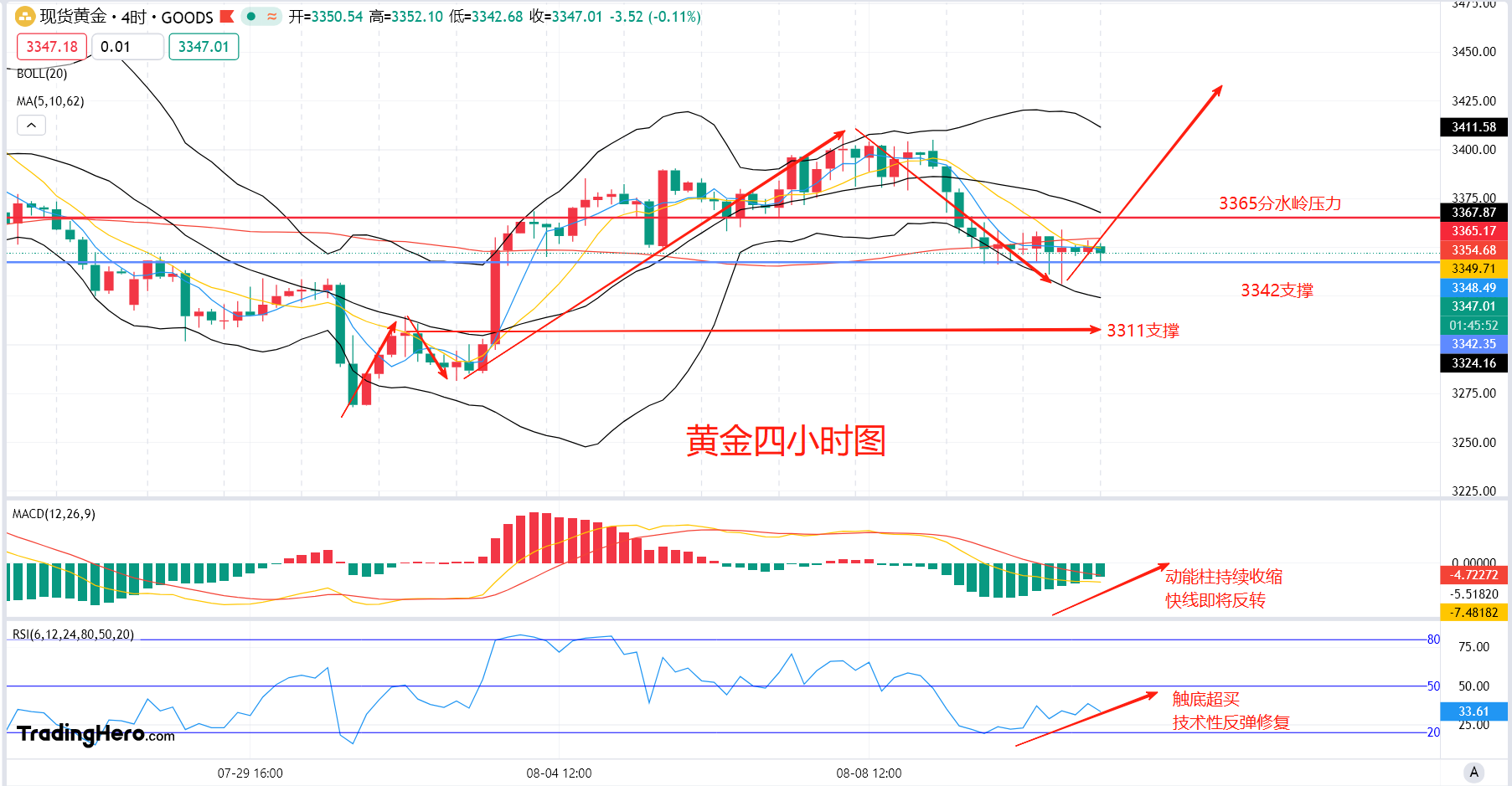 压力中枢:3358-3365,阻力位:3380