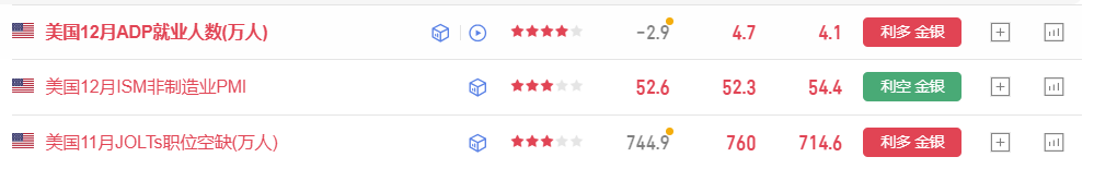 回到本期今天即将发布的12月份非农就业人口和失业率方面,虽然在昨晚的12月份挑战者裁员的人数降低,给出一个利空的数据,但是从实际情况来讲,从去年整年的企业裁员来看,几乎是呈现全年收紧的情况,尤其是在年中和下旬美国政府停摆时期,裁员人数异常飙升。现在美国私营企业会不会面临已经收缩到临界点的情况下,一个萝卜一个坑,刚好能够维持企业的运转,无人可裁的地步呢?随着降息的利好提振,另一方面也是有了小幅的好转,在维持现状的同时不同企业的发展情况是不统一的,但裁员的人数按照事实来讲是出现了明显的好转,所以按照这种情况下,美国小非农实际公布指数相较于前值有了明显的新增,尽管相较预期不足,但是从初请失业金方面的情况和裁员的力度来看,种种现象能够表现出来就业出现了停止倒退,开始向前小步的前进。