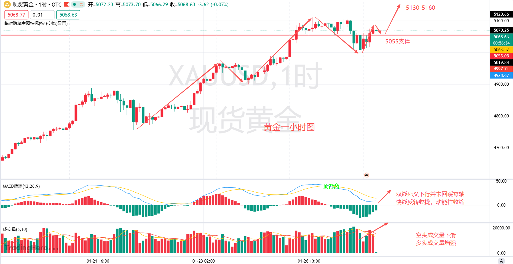 这黄金昨天白天涨100多美金晚上美盘抛下来一百多美金,涨涨跌跌不少人都倒在了追涨杀跌的路上吧?昨天算是看了一天的上涨从早上亚盘开盘后就开始跳空高开,沪金开门之后更是往上高走,这就式在说明有资金在持续流入到黄金市场当中。但是好景不长到了晚上美盘时段行情最终没能够破位白天的前高,走出了偷袭。在收盘之前测试到了4990美元的位置。不过这样也好,给出了回调接多的机会,在我看来这叫关上一扇窗,然后把大门开开了。今天不乏有人看到昨晚走出回调了以为狼又要来了,但是我要说还有一波上涨或许会遭到质疑,就在写文章的时候行情向下给到了机会,通知实盘5013-5015进场接多,截至现在极高时段行情已经运行至5070美元关口震荡,六十个点的路程是到手了,也并没有看到有明确反转线出现,保险起见是还是要先行的锁定利润为主,把仓位减小了,留了个底仓继续飘荡看涨,也就是说今日的行情先看100美金的上涨,重回5100美元关口吧。