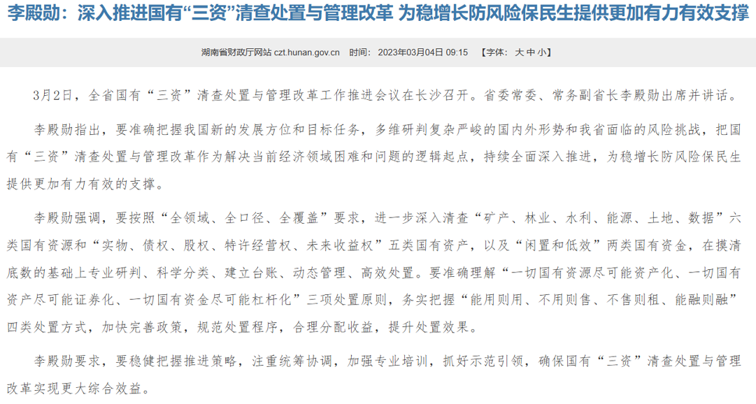 但到了2023年初,画风突变。李殿勋提出的"三个尽可能",把原本温吞的"盘活存量",升级成了"三资改革"。从"可以做"到"尽可能做",从"鼓励试点"到"全领域、全口径、全覆盖"。