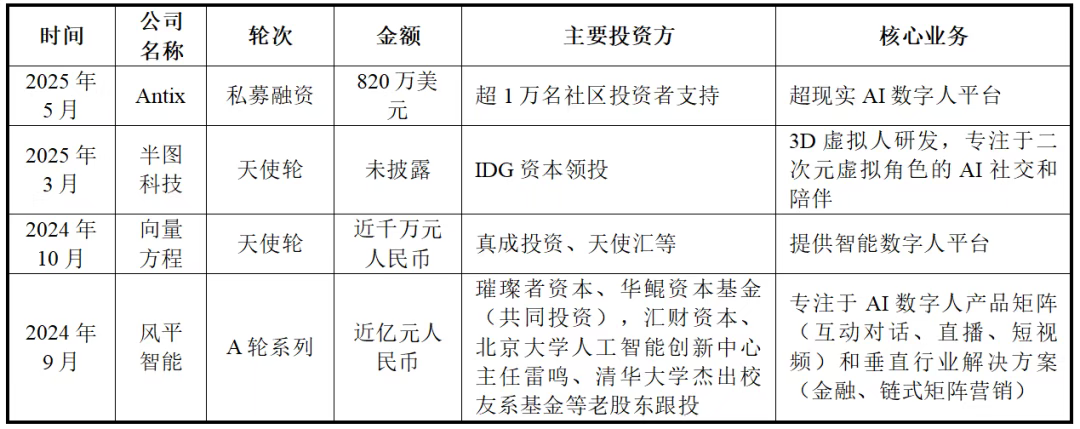 从投资轮次来看,目前中国AI数字人行业融资轮次处于起步和初期阶段,以天使轮、A轮为主,说明行业内新兴企业较多,竞争较为激烈。2024年以来,AI数字人行业主要融资事件如下表所示: