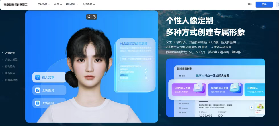 百度曦灵数字人是面向视频、直播方面的AI工具。作为大模型驱动的全模态数字人应用平台,百度曦灵可一站式生成2D真人、3D超写实数字人,支持视频制作、智能对话、直播带货等全场景应用,赋能政企营销获客和对客服务。
