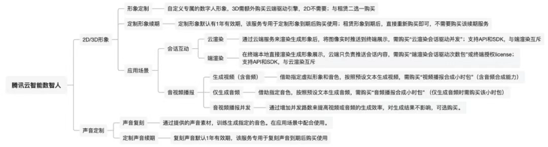 腾讯云数智人服务内容包括业务办理、用户运营、营销获客、品牌宣传等,服务行业覆盖银行、证券、保险、教育、政务、传媒、文旅、运营商、交通出行等,应用场景包括数智主播、数智客服、数智助手、数智导游、数智代言人等。腾讯云智能数智人售卖三类产品:形象采购、播报服务以及交互服务。形象采购为必选项,可以搭配数智人的播报服务以及交互服务一同使用。