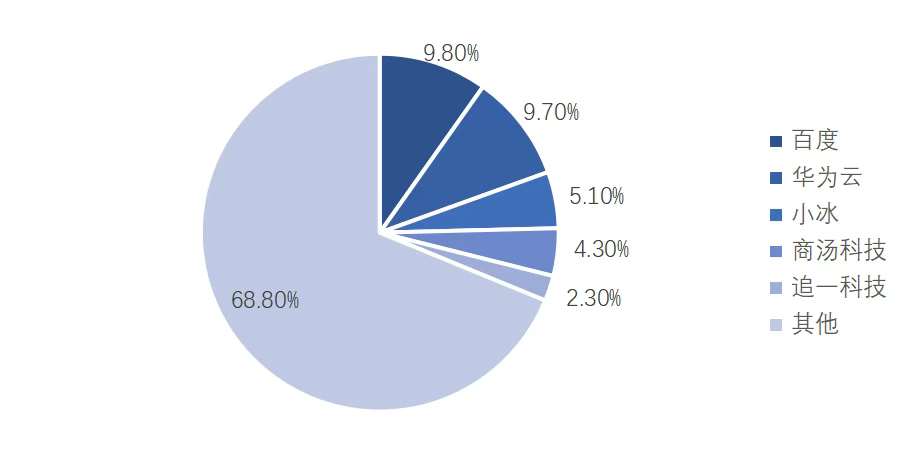 - 国内主要玩家大体上可分为科技巨头派、AI技术派、垂直应用派、创业与新锐派等四个不同的派系类别。其中百度、华为云分别以9.8%、9.7%的市场份额领先于其他企业。