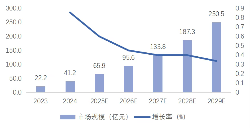 根据IDC披露的数据,2024年中国AI数字人市场规模约41.2亿元,相比2023年增长85.3%;预计到2029年,市场规模将达到250.5亿元,2024-2029年CAGR达43.5%。