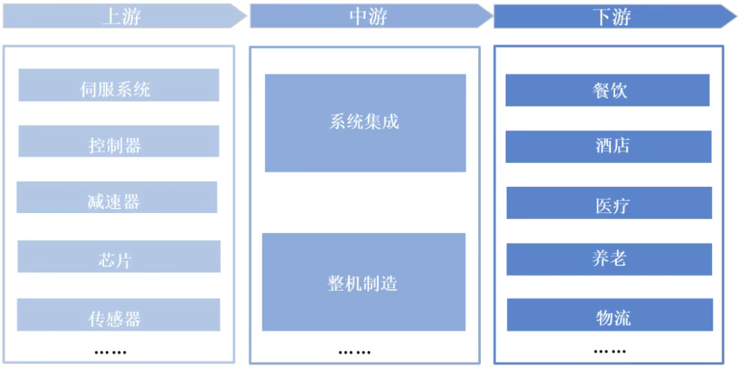 上游包括伺服系统、控制器等核心零部件,以及赋予机器人“感知”与“智能”的操作系统、图像/语音/语义识别等关键模块;