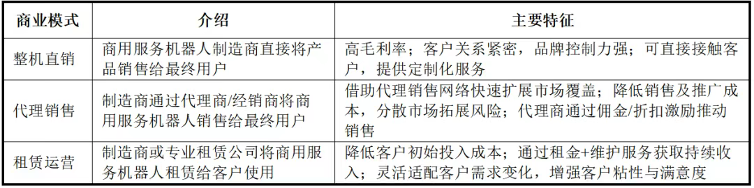 图表7服务机器人的主要商业模式对比