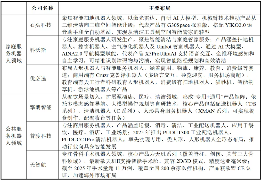 图表10服务机器人行业代表企业主要布局情况