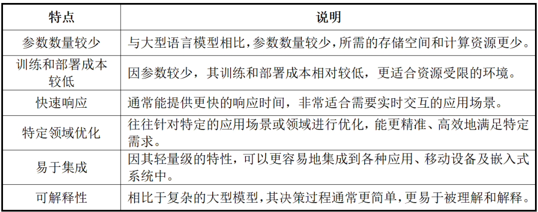 鉴于参数量相对较少,小语言模型在训练和部署方面,具有成本低、快速响应、特定领域优化、易于集成、可解释性等优势。