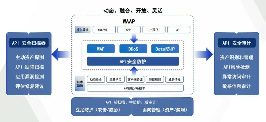 针对API接口的全生命周期安全管理,涵盖资产梳理、脆弱性检测、异常调用监测及溯源。
