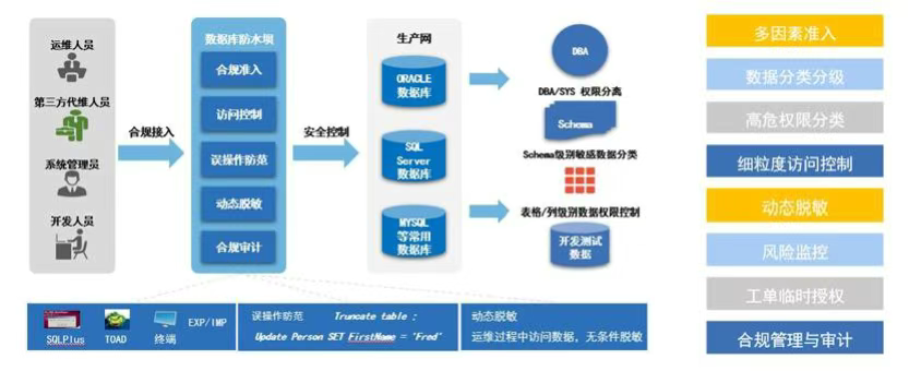 数据脱敏:则通过对敏感数据进行匿名化或屏蔽处理,使其在测试、开发等非生产环境中安全使用。