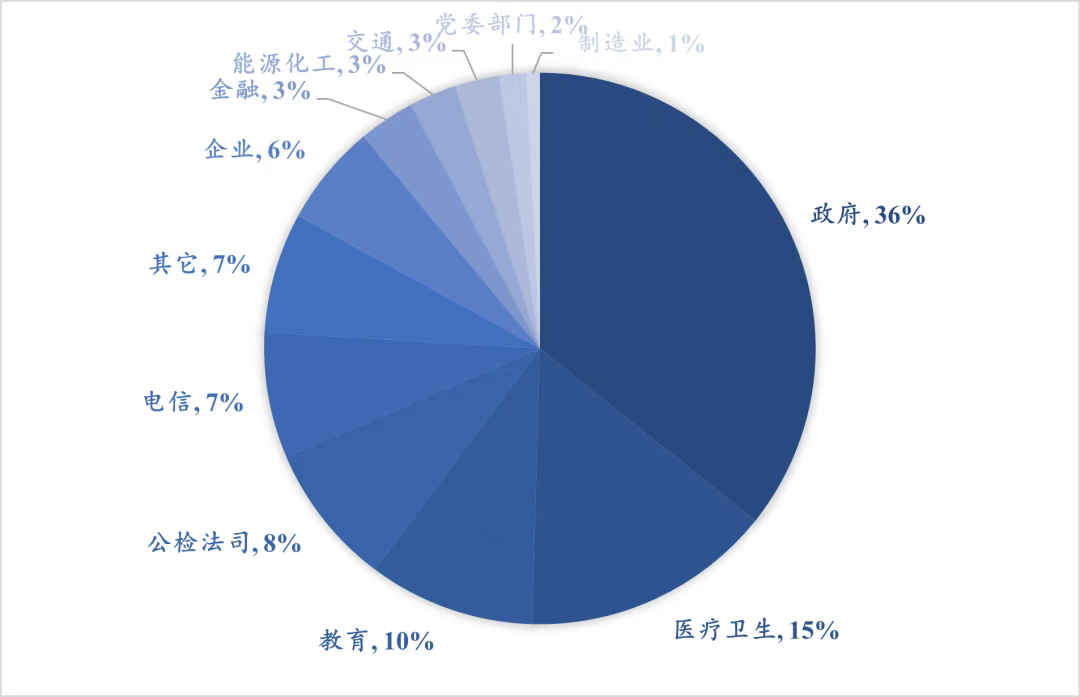 由于体量较大、对数据安全要求高,政府、医疗卫生、教育、公检法司及电信仍是数据安全建设的主要参与行业,约占2024年整体项目数量的76%。
