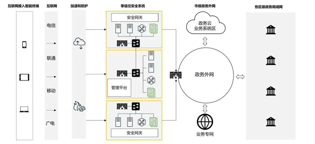基于零信任架构构建政务网络安全接入平台,通过动态身份认证、终端沙箱隔离及虚拟浏览器技术,解决远程办公跨网访问风险。