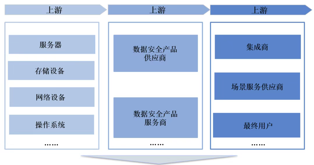 中游则主要以数据安全产品供应商和服务商为主,例数据加解密、数据库安全、数据防泄漏以及咨询安全,运维服务等;