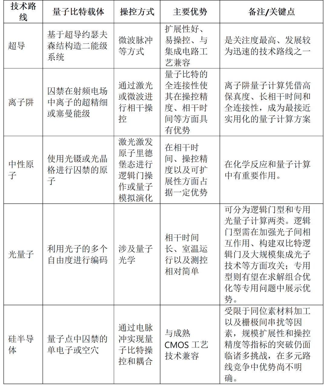 - 量子计算基于量子力学原理,利用量子比特的叠加与纠缠特性,实现远超经典计算的并行处理能力,有望在生物制药、材料研发、金融优化、人工智能等领域带来指数级算力提升。当前,超导、离子阱、光量子等多条技术路线并行发展,其中超导路线进展最快、专利数量领先。