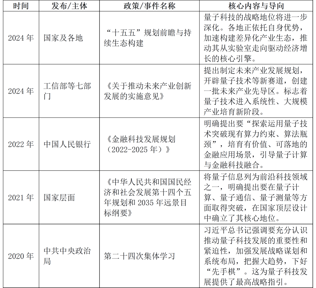 1)2025年政府工作报告提出建立未来产业投入增长机制,明确量子科技为重点发展方向。北京、安徽、上海、广东、湖北等地同步行动,通过设立未来产业基金、科研项目、公共平台等方式推动量子生态发展。