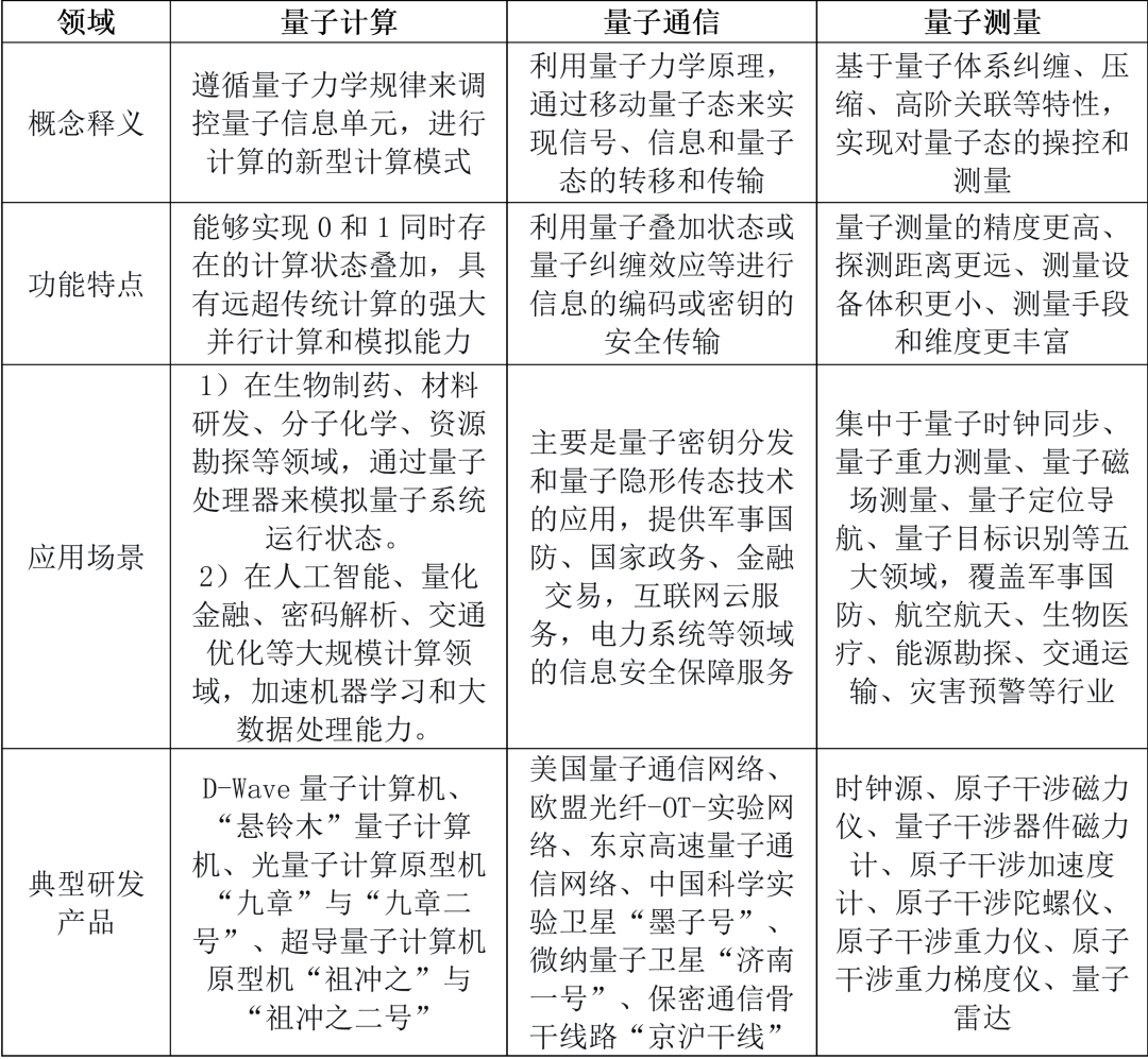 量子信息技术主要包括量子计算、量子通信和量子测量三大应用领域,其中,量子计算是遵循量子力学规律调控量子信息单元进行计算的新型计算模式,也是量子信息技术领域价值量最大的环节。量子计算的核心在于利用量子力学的基本原理(如叠加性、量子纠缠和量子干涉)来进行信息处理。