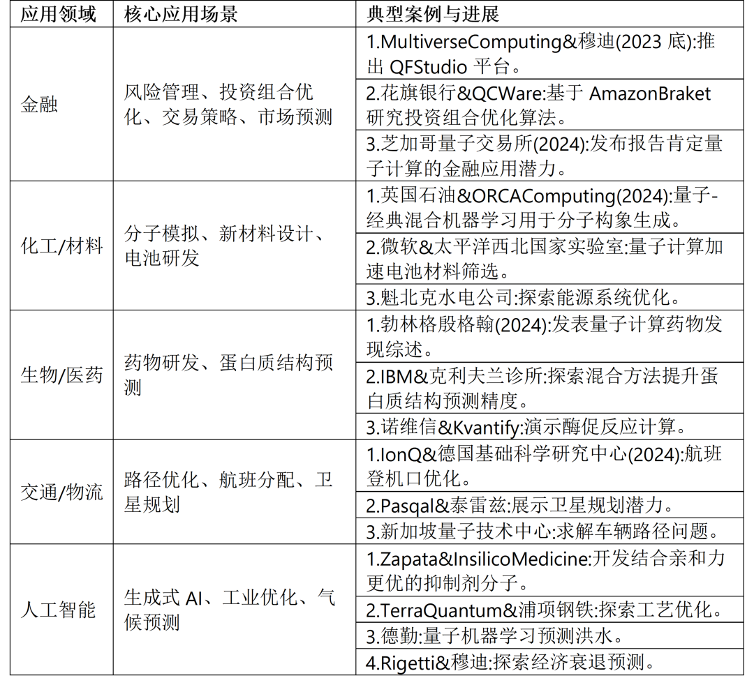 量子计算的行业应用合作部分涵盖了多个领域,如金融服务、生物医药、化工材料、交通运输、人工智能等。在这些领域,已经深耕多年的大型企业或行业巨头与量子计算软硬件公司展开合作,以解决当前面临的实际问题和挑战。