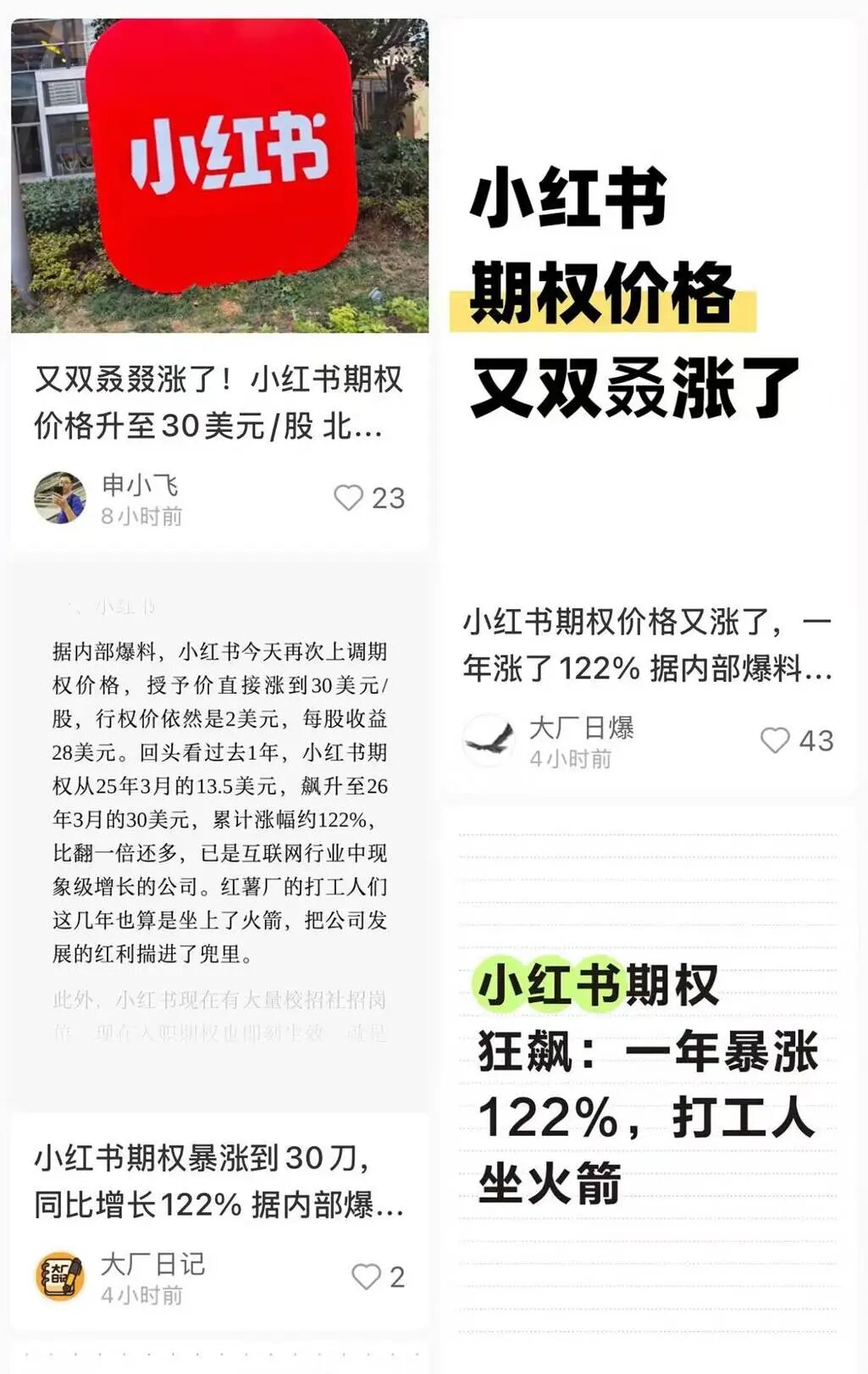 社交平台上,有小红书员工忍不住感慨:“去年还在纠结要不要把年终奖换成期权,现在回头看,这大概是我这辈子做过最正确的理财决定。”也有人调侃:“我们炒股一年白忙活,别人期权躺着涨。”