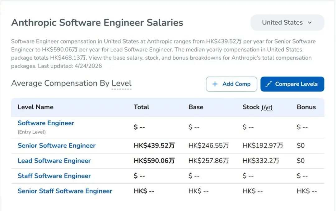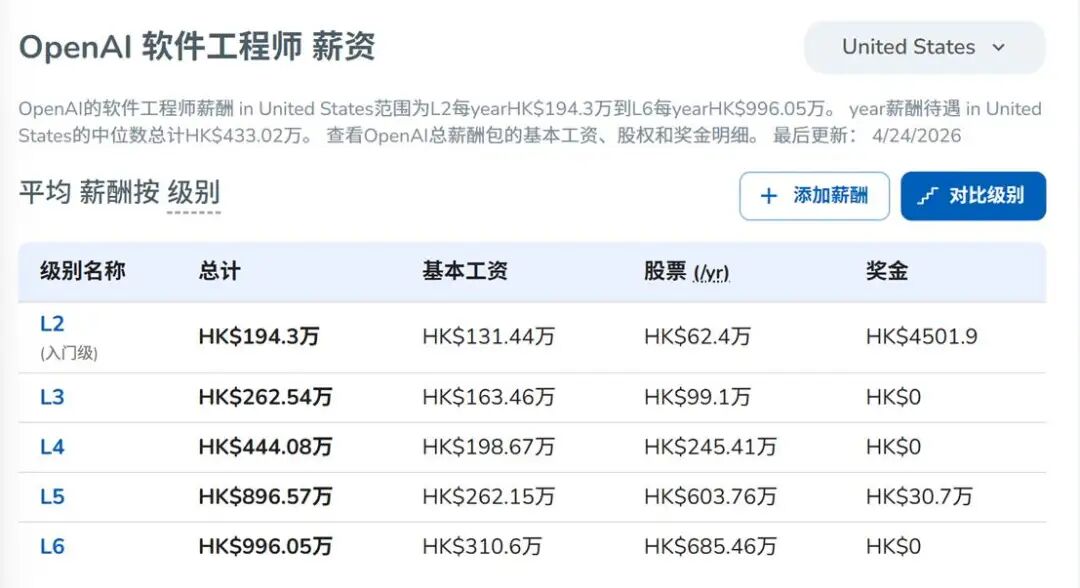 根据 Levels.fyi 2025-2026年度的实时薪酬监测显示,在西雅图及硅谷地区,OpenAI或Anthropic等头部AI机构的高级研究员(L5/L6级别),其包含基础薪资与期权奖励在内的总包通常维持在 $80万至$120万 之间;相比之下,同级别的大型科技公司普通后端架构师,其薪酬中位数约为 $35万至$45万。这种约 2.5倍 的薪资级差,折射出底层技术驱动力的根本性位移。