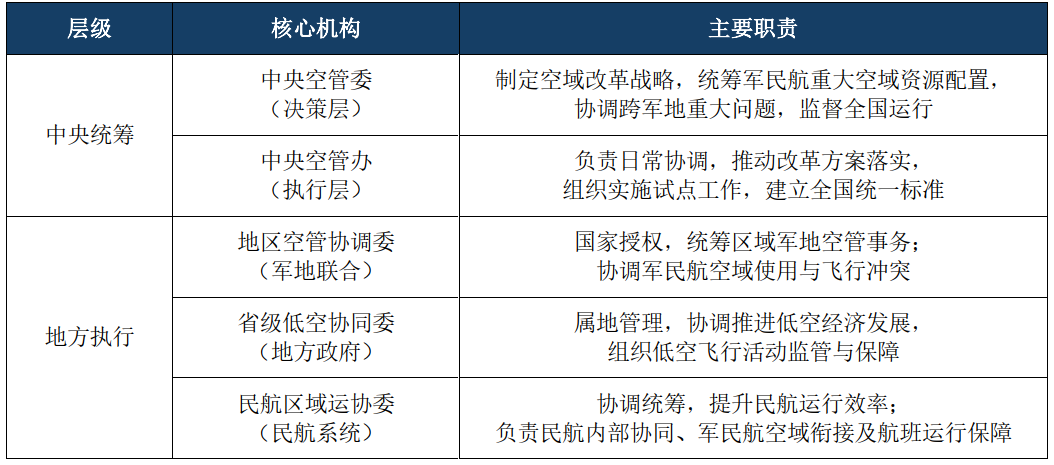 - 空域管理模式:军地民协同管理