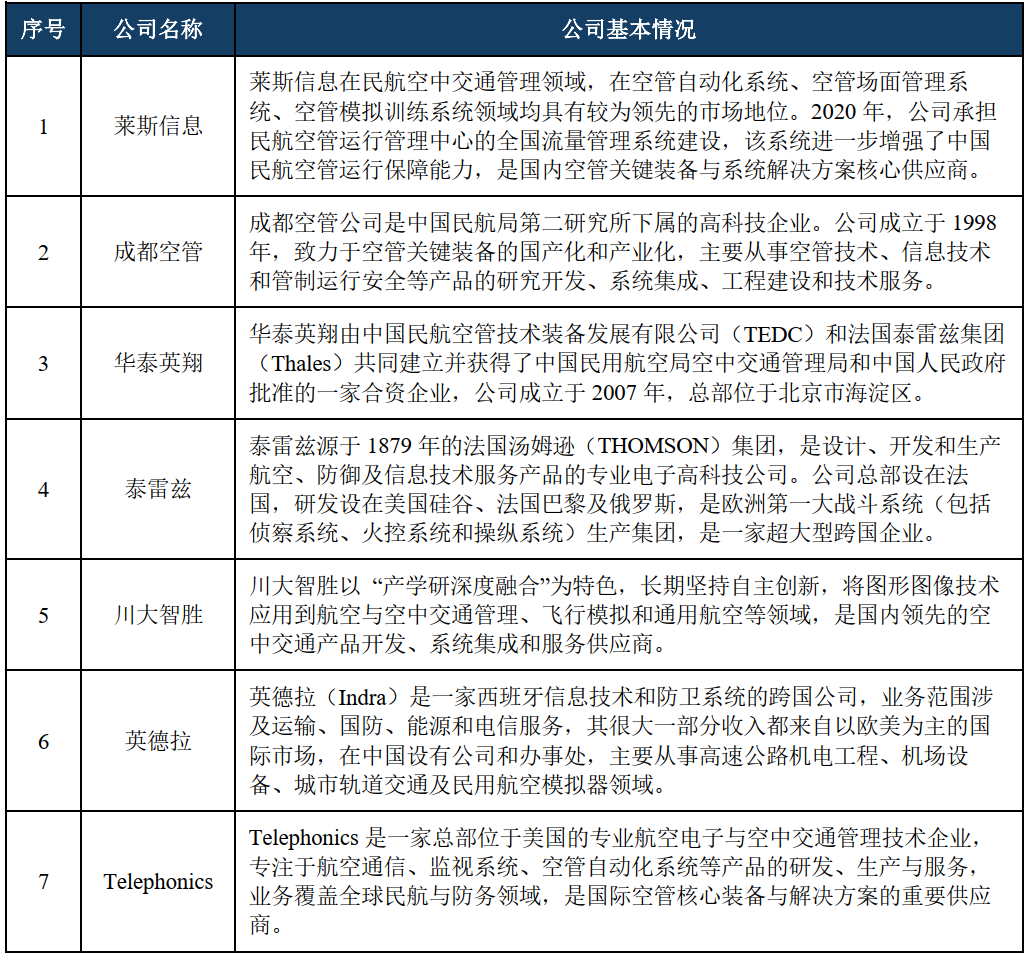 图表10 空管系统主要公司基本情况