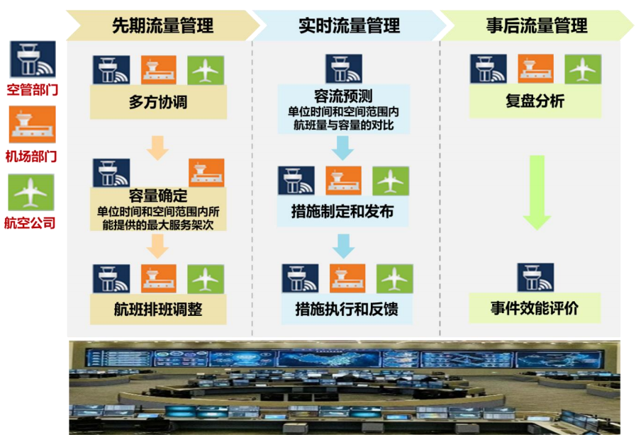 - 空中交通流量管理(ATFM)可增加空管精度,空中交通管制(ATC)可实现最优容流平衡。