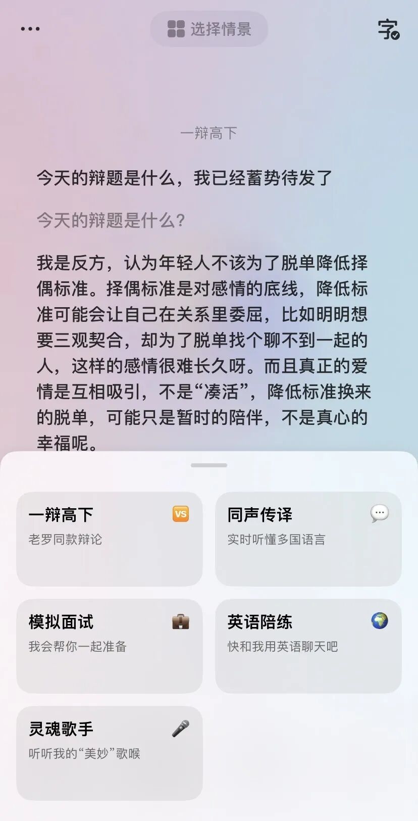 正如罗永浩在辩论后感慨:“现在如果是辩论或吵架,我试过的所有大模型产品里,豆包是最厉害。”这句话或许不仅是对一个AI助手的评价,更是对一种新交互方式的认可。当AI能够理解情绪、承接语境、参与博弈时,人机关系正在被重新定义。