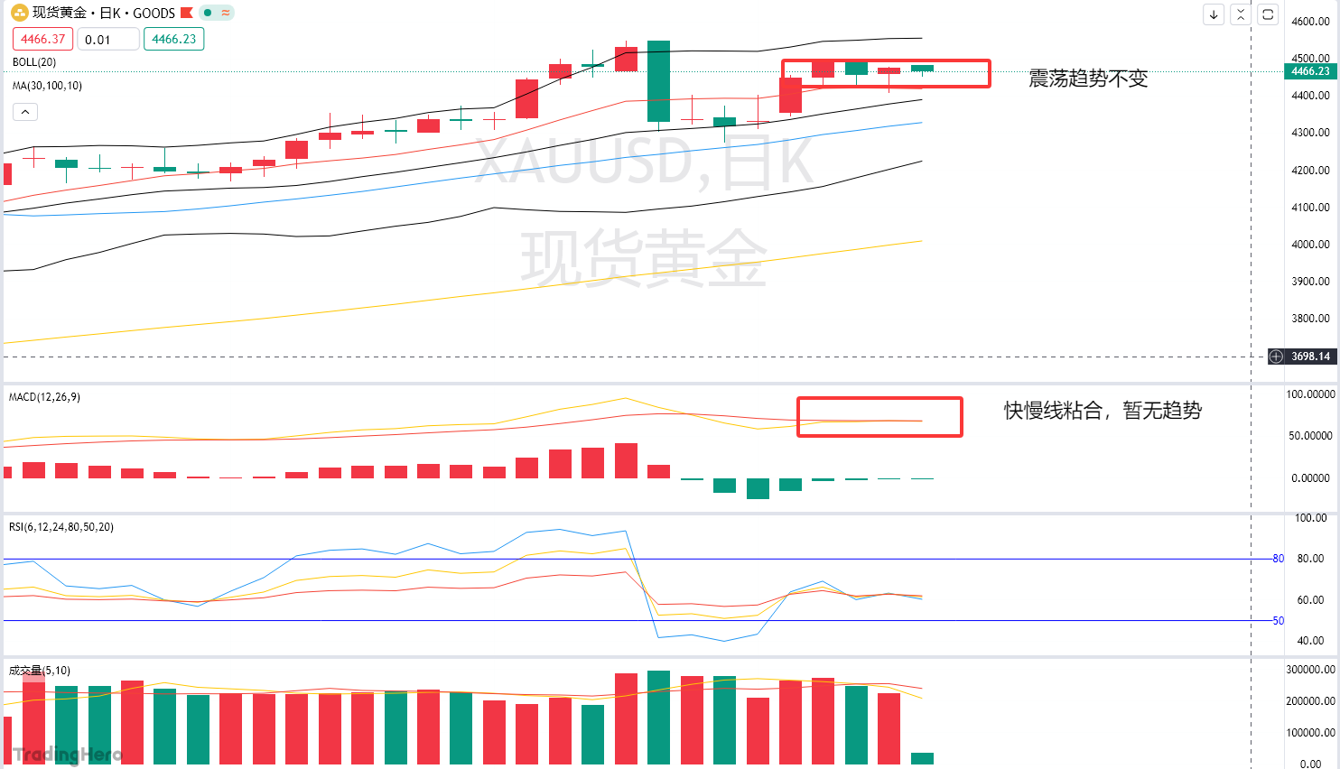 技术面层面,日线与4小时级别均呈现震荡蓄势特征,等待非农数据打破平衡。日线级别上,4500整数关口的压制作用始终稳固,该位置既是前期震荡高点,也是多头难以逾越的心理防线;下方支撑重点关注10日均线4420,此位置多次承接住回调动能,是短期趋势的关键分水岭。同时日线MACD快慢线处于粘合状态,动能柱近乎缩至零轴,表明多空力量暂时均衡,非农数据将成为推动快慢线发散、开启新趋势的核心催化剂。