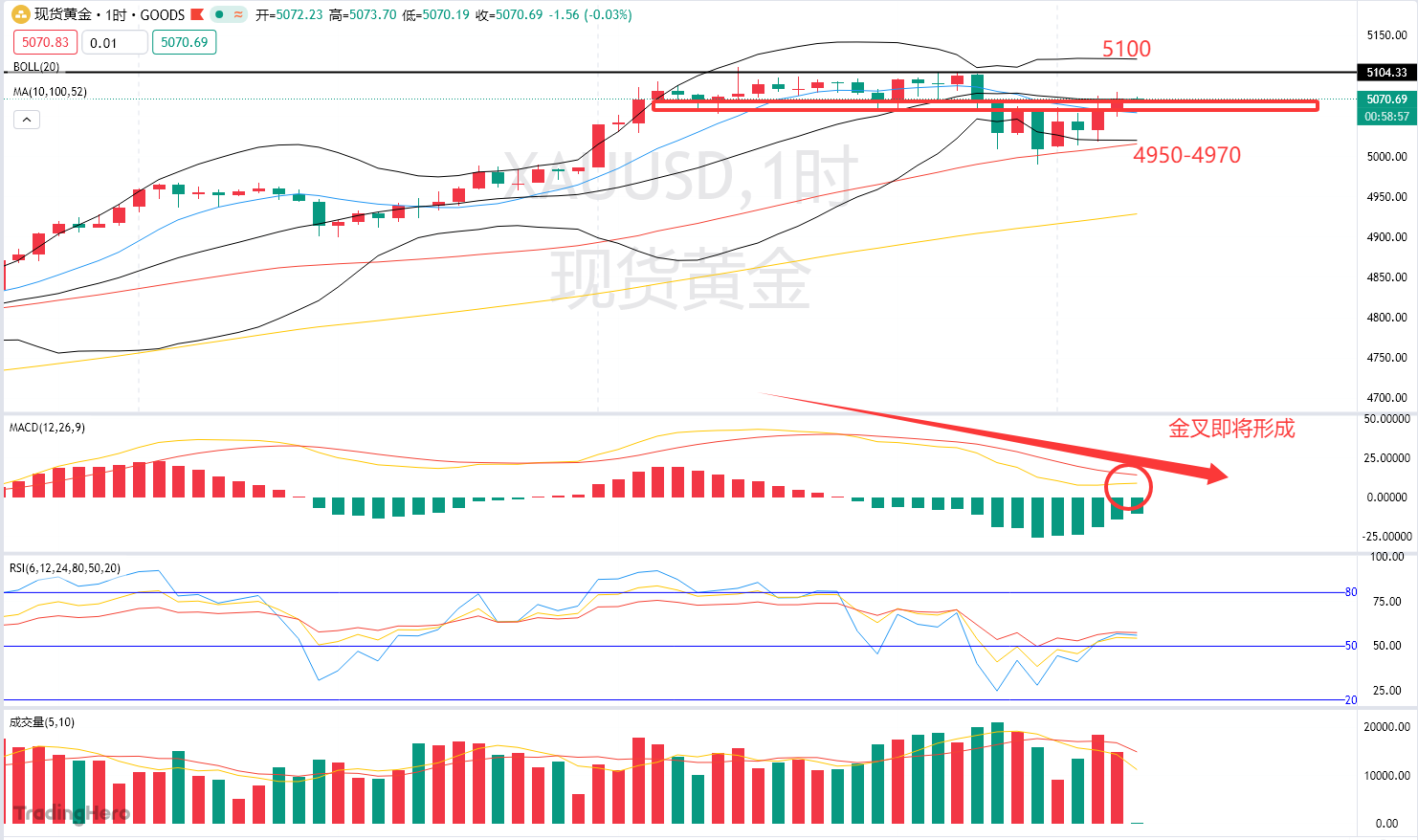 昨日黄金市场上演了一场极致“心跳行情”:早间暴力拉升100美金刷新短期高点,午后至美盘又直线回落100美金,精准回吐当日全部涨幅。这种“先扬后抑”的宽幅震荡,本质上就是主力资金的洗盘动作,目的很明确——把持仓长线多头的利润强制回吐,磨掉散户的耐心与持仓信心。好在我此前文章中已提前预判这种剧烈波动,明确给出5050-5060核心支撑区间,以及跌破后的5000、4980-4990次级支撑,而行情也完全按预期走,在触及支撑后企稳反弹,再次印证了提前研判的重要性,后续仍需紧跟文章节奏,把握关键区间机会。