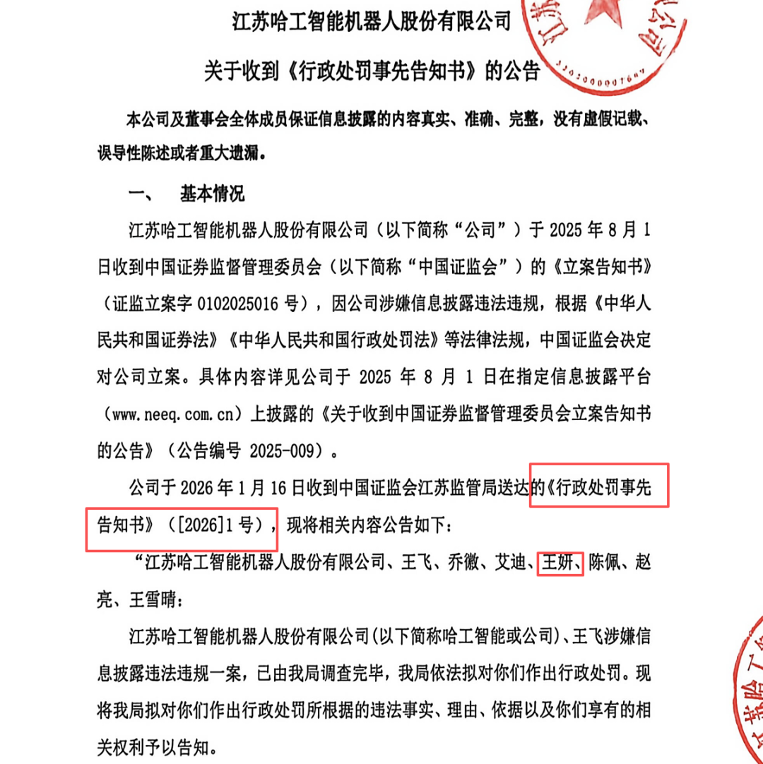 近日,已于去年退市的哈工智能公告收到证监会的《行政处罚事先告知书》,退市归退市,处罚还是要处罚的。
