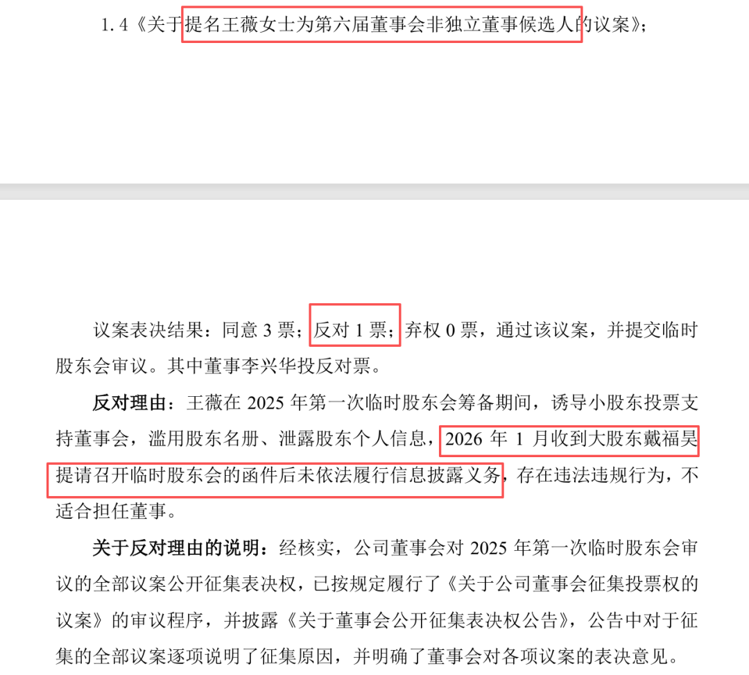 此外,公司在换届过程中,董事会提名的董事会上也出现了分歧,比如刚上任的董秘王微被提名为董事候选人时就收到了反对票。