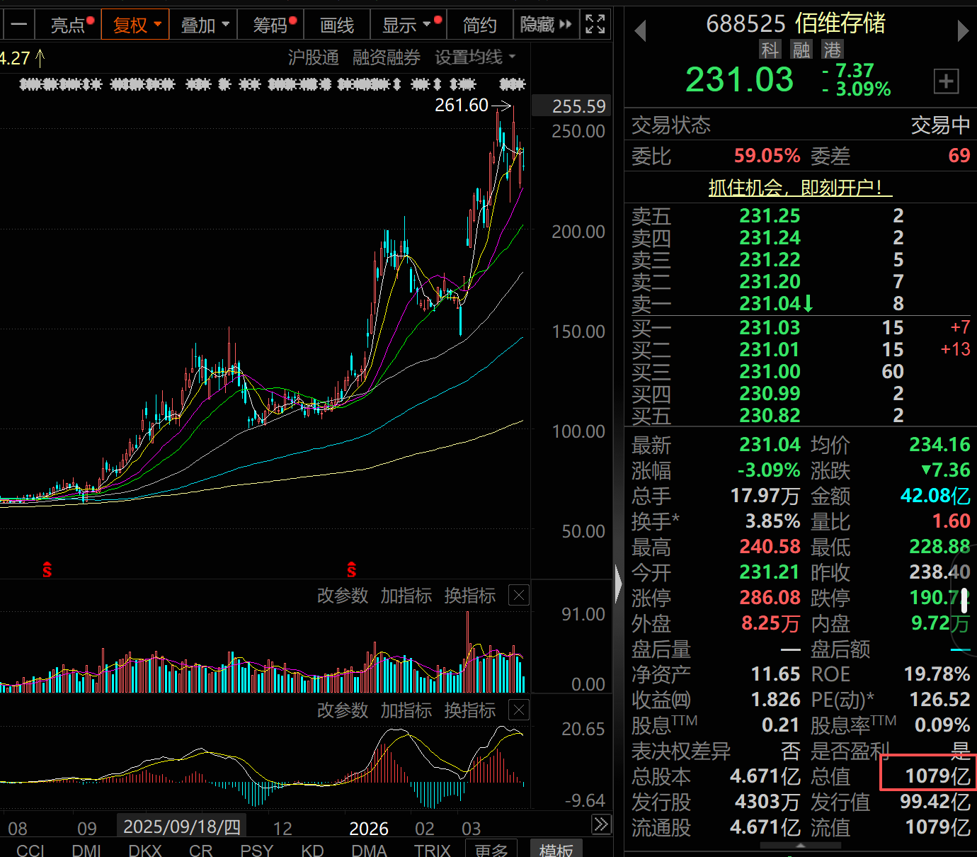 佰维存储2022年12月30日登录科创板,也就是说黄炎烽也是公司IPO时的董秘兼财总,公司刚上市时总市值还不到百亿,短短三年多的时间,成长为一家千亿市值公司。