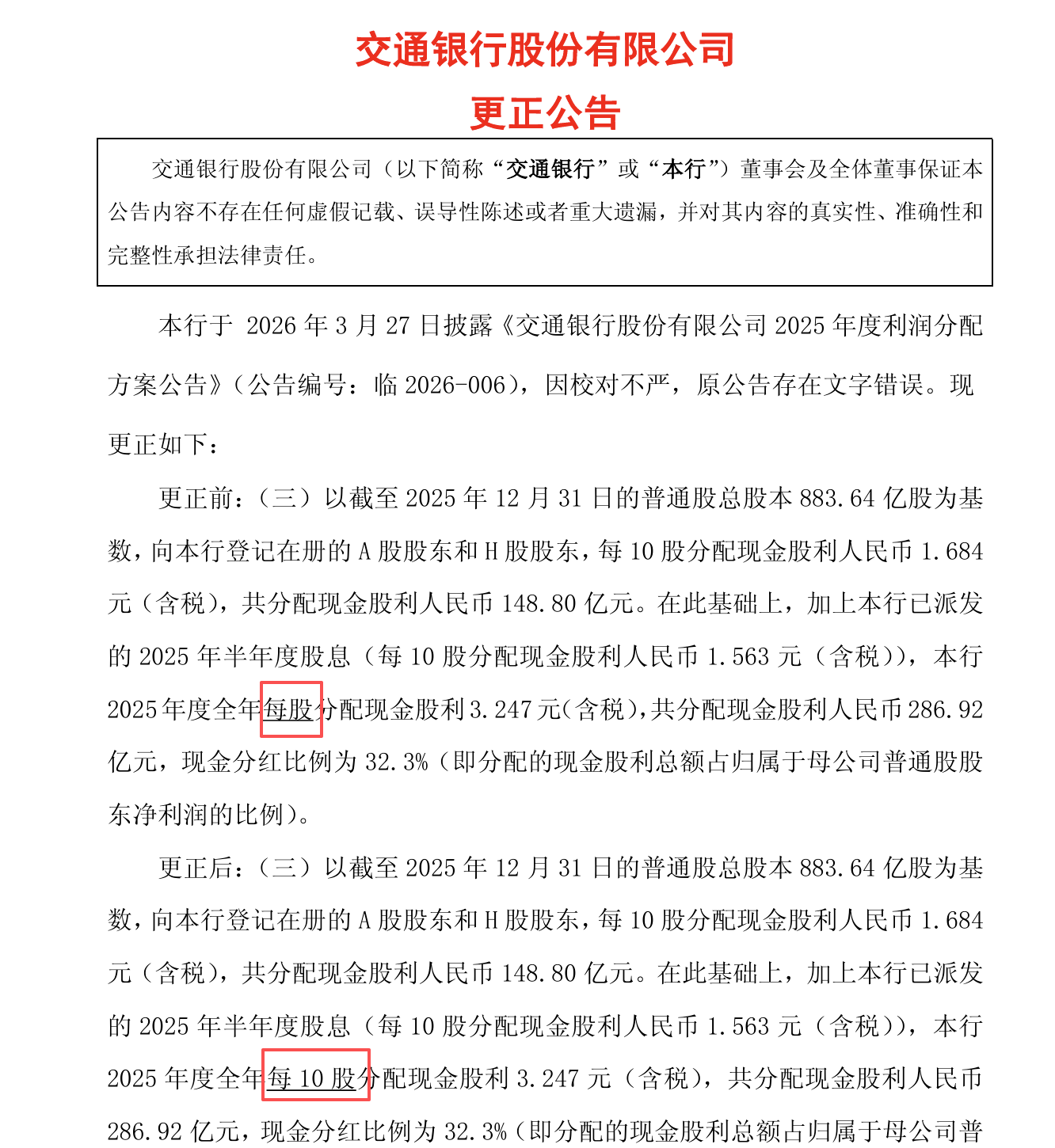 最近资本市场最受关注的信披事件,莫过于交通银行、光大银行这两家刚获评信息披露考核A类的上市银行,接连曝出年报低级错误:一个把“每10股派息”写成“每股派息”,造成千亿级数据偏差;一个在A+H股年报里出现分行数据错位、前后矛盾。