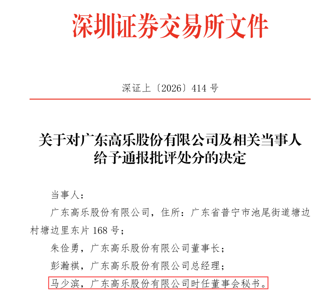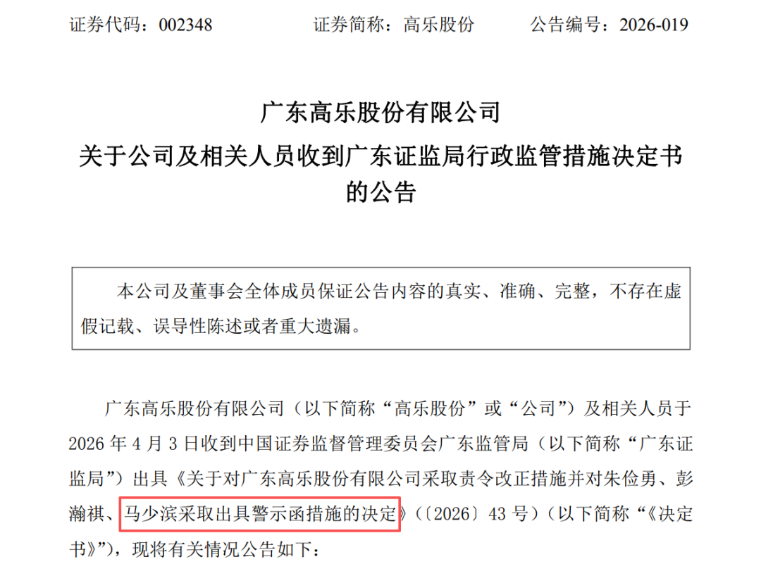 近日,广东局和深交所分别给予了高乐股份董事长、总经理还有时任董事会秘书马少滨先生警示函和通报批评的处分,原因则是公司在最近开的会议中错误百出。