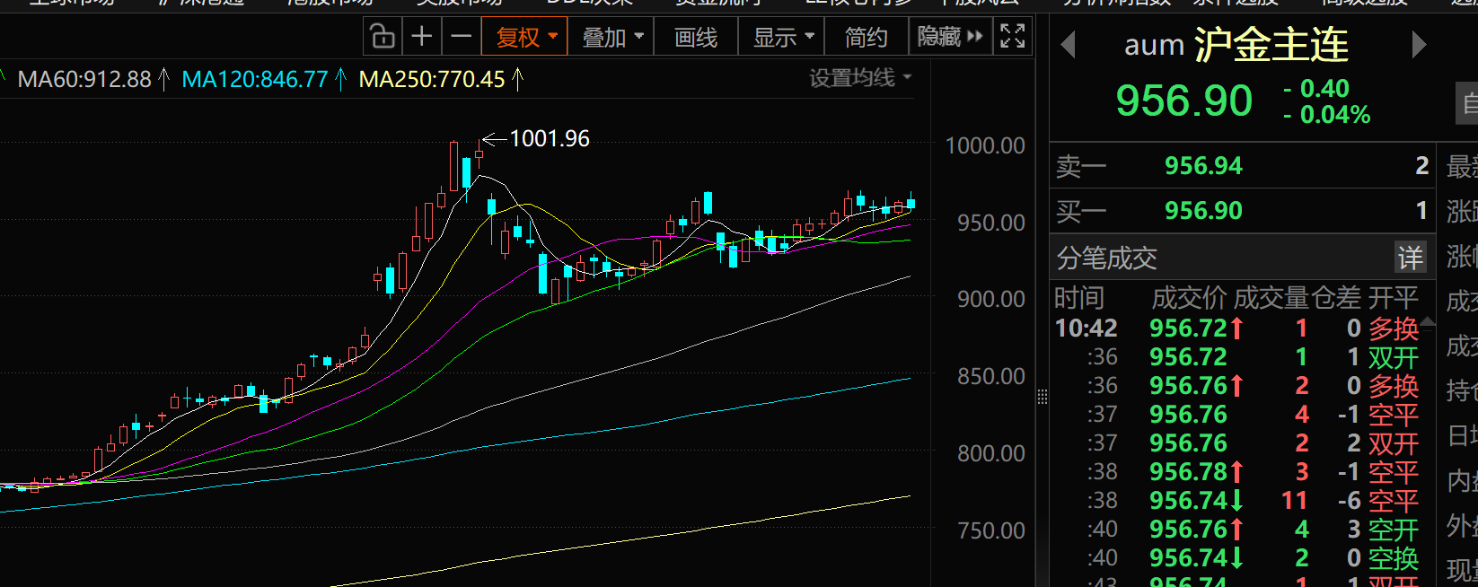 沪金主连上抗跌较为明显