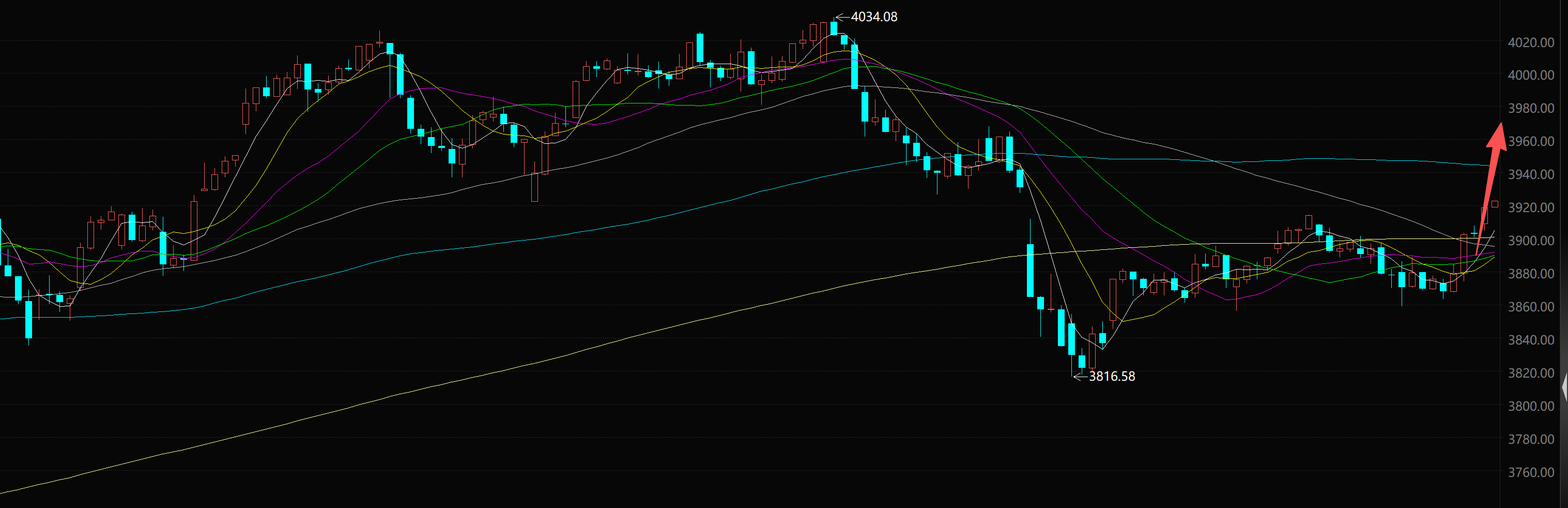 短线级别建议关注4184-4188区间支撑,考虑低多机会,反弹上方建议关注4216-4220区间压力,破位继续持有参考上方4145-4150区间