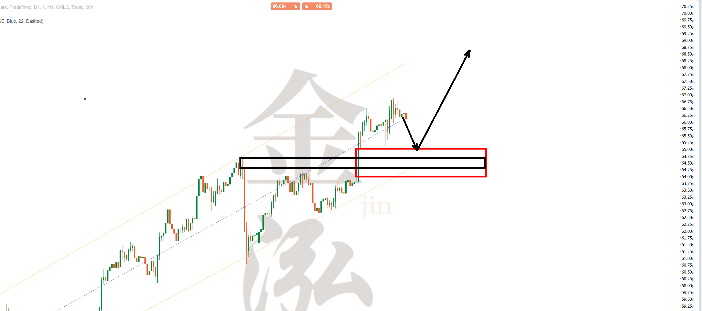 短线级别建议关注64.5-64.6区间支撑,考虑低多机会,反弹上方建议关注第一压力区间66.7-66.8 破位继续持, 避免追高。