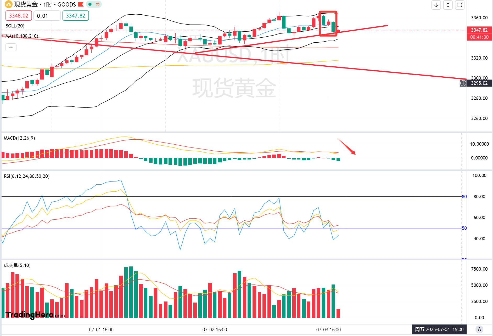 最近被黄金搞得是有点难受,对比上个月的行情,这个月底行情反转也很大,并且市场情绪也很让人捉摸不透,要抓的特别特别的准确才能获利10个点以上,要么呢就凌晨都休息了开始偷偷摸摸的,早上还没起来疯狂的波动,然后早上开盘这个行情波动区间太小了,或者说,在七月份这个月不应该是这样的走势,也有可能是因为黄金接近3400了吧,所以目前走势真的有点让人看不懂,所以最近做单还是不太顺利的,市场情绪,和数据公布以及思维的调整还得多多反省,所以今天关键位置,关键点位,就直接上就完事了。不想太多了。