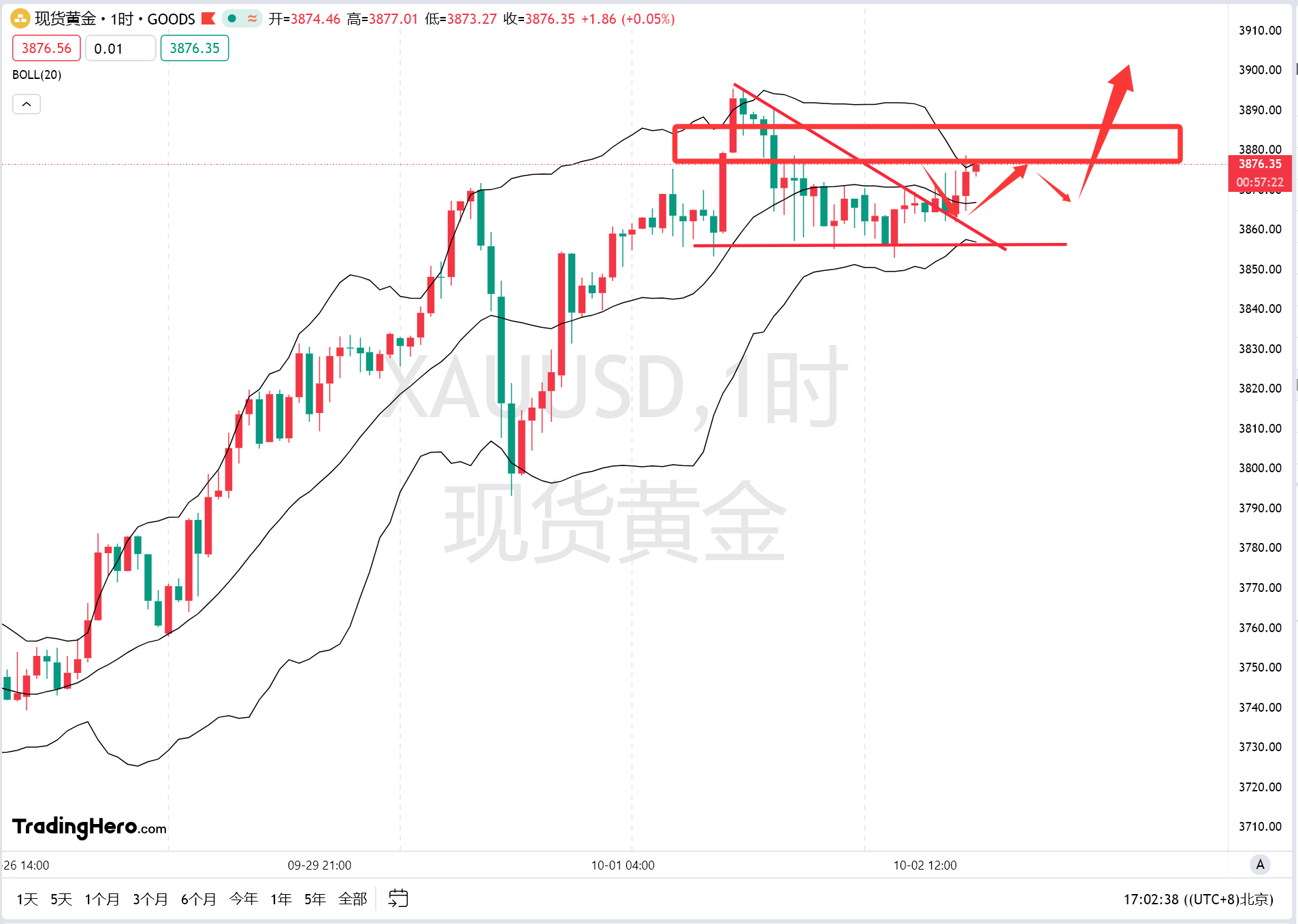 还是说昨天公布的数据吧,ADP数据昨天公布毕竟大利多,市场目前对于降息的押注肯定是提升了,你说如果美国政府不停摆,我看到这个数据,我肯定去看黄金4000了,非农数据肯定利多没跑了,毕竟爆冷利多,再咋样都会影响非农数据的公布,但是目前美国政府停摆,后面数据不公布了,所有的东西只是猜测,这要是停摆时间超过美联储利率决议公布的时间,你猜美联储会不会考虑降息?我相信他们肯定会选择不降息,借口不就是美国政府停摆导致经济的不确定性呗,老套路了,然后观察数据看看十二月份要不要降息,所有目前我对于降息这个是持有怀疑态度的,行情还真不有点继续往上冲高了。