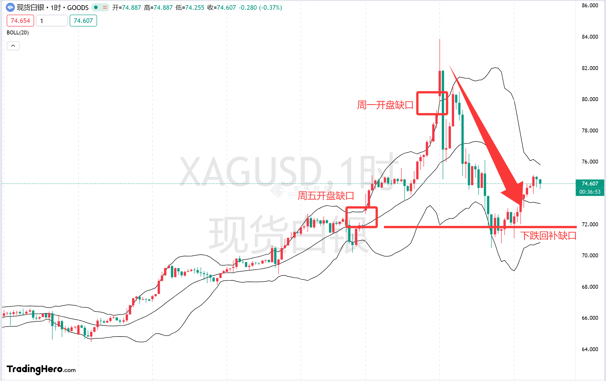 从技术面来看,我们这一次下跌其实是根据当时白银的缺口看下跌的,那么现在的买点根据白银目前的缺口回补完毕,现在就是一个特别好的买点,包括上周三我看到的一个平行通道的底部区间,这次刚刚好测试到,所以我们根据目前白银结合黄金的走势来布局今天的思路。
