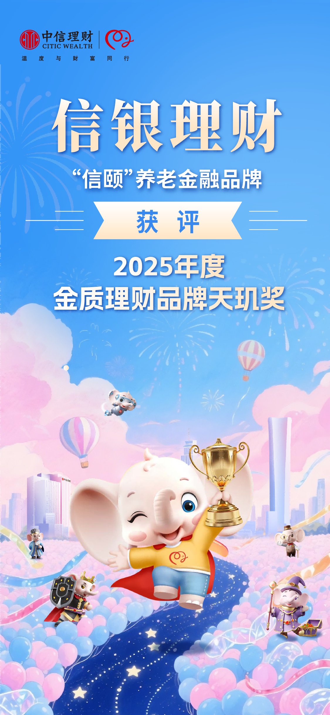 近年来,“中信理财”稳健可信、有温度的品牌形象,获得了投资者和专业机构的广泛认可,累计荣获《亚洲银行家》《中国证券报》金牛奖等权威奖项、荣誉超两百项。