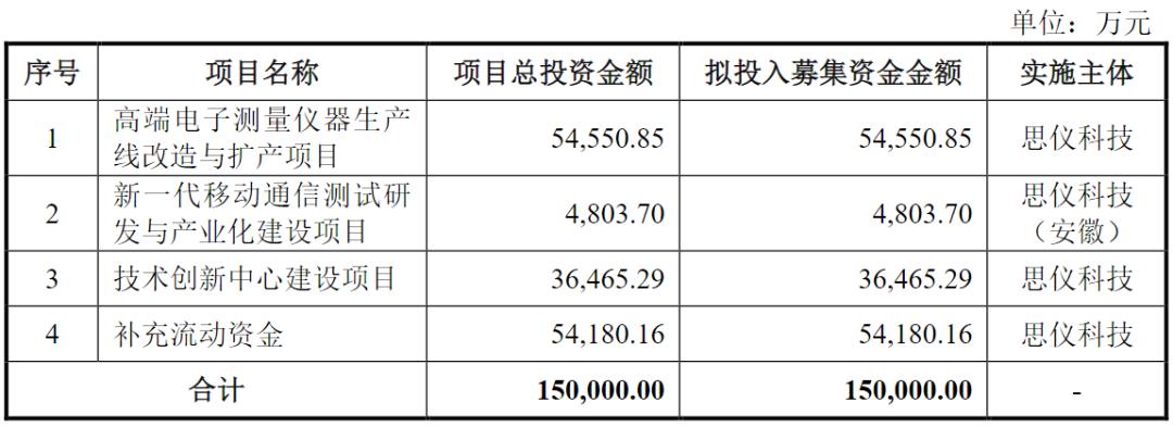 此次冲刺创业板,思仪科技拟募资15亿元,比科创板时增加了近3亿元。其中,5.46亿元用于高端电子测量仪器生产线改造与扩产项目,4803.70万元用于新一代移动通信测试研发与产业化建设项目,3.65亿元用于技术创新中心建设项目,5.42亿元用于补充流动资金。